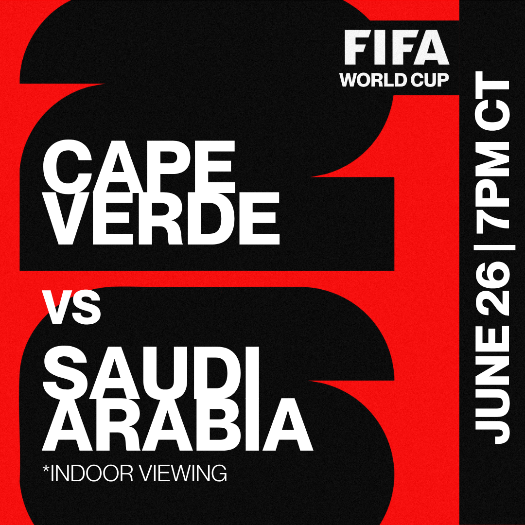Back to All Events π¨π» Cape Verde vs πΈπ¦ Saudi Arabia Friday, June 26, 2026 7:00β―PM 8:00β―PM Google Calendar ICS Watch Cape Verde vs Saudi Arabia at Recess Chicago, where the match takes over with full audio, wall-to-wall screens, and a crowd thatβs locked in from start to finish.